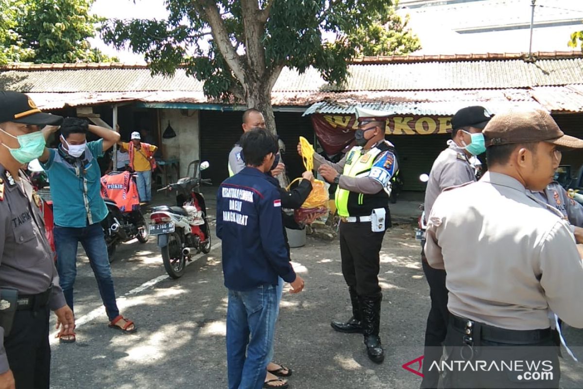 Mentok, Bangka Barat (ANTARA) - Aparat Kepolisian Resor Bangka Barat, Provinsi Kepulauan Bangka Belitung membagikan masker kepada para juru parkir, sopir angkutan dan pengojek di Mentok guna meminimalkan penularan virus corona.
