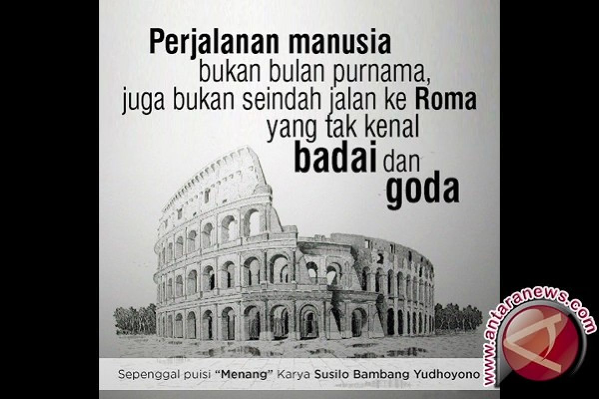 Penggalan pusisi tersebut berbunyi; "Perjalanan manusia bukan bulan purnama, juga bukan seindah jalan ke Roma yang tak kenal badai dan goda."