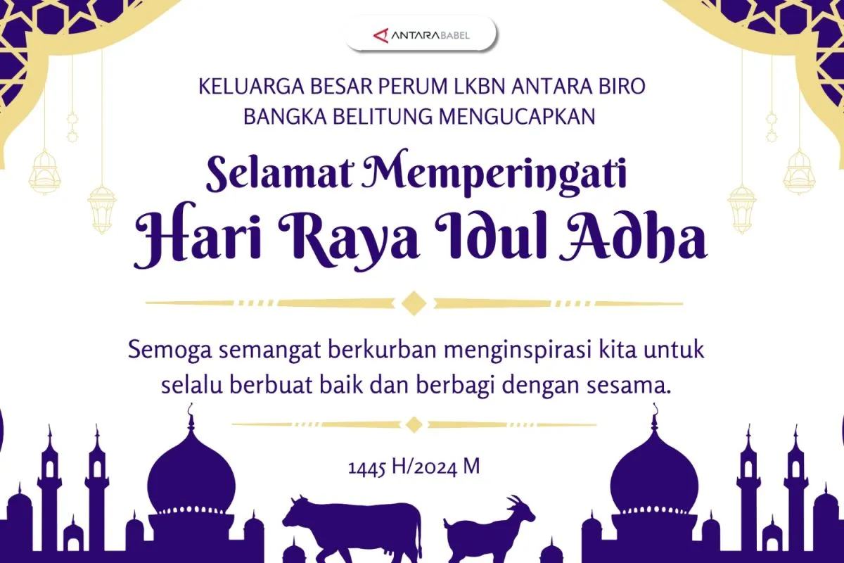 Keluarga Besar Perum LKBN ANTARA Biro Bangka Belitung mengucapkan selamat Hari Raya Idul Adha 1445 H/2024 M. Semoga semangat berkurban menginspirasi kita untuk selalu berbuat baik dan berbagi sesama.