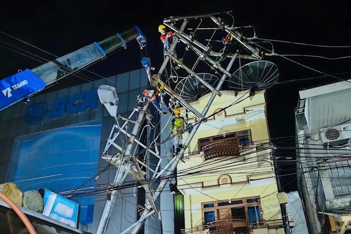 Pangkalpinang (ANTARA) - PT PLN (Persero) Unit Induk Wilayah Bangka Belitung bergerak cepat menangani gangguan kelistrikan akibat pohon tumbang yang menimpa tiang listrik di Jl. Masjid Jami, Pangkalpinang, Kamis (1/5). Berkat respons sigap petugas PLN dan dukungan Pemerintah Kota Pangkalpinang, sistem kelistrikan di lokasi kejadian berhasil dipulihkan dalam waktu singkat.