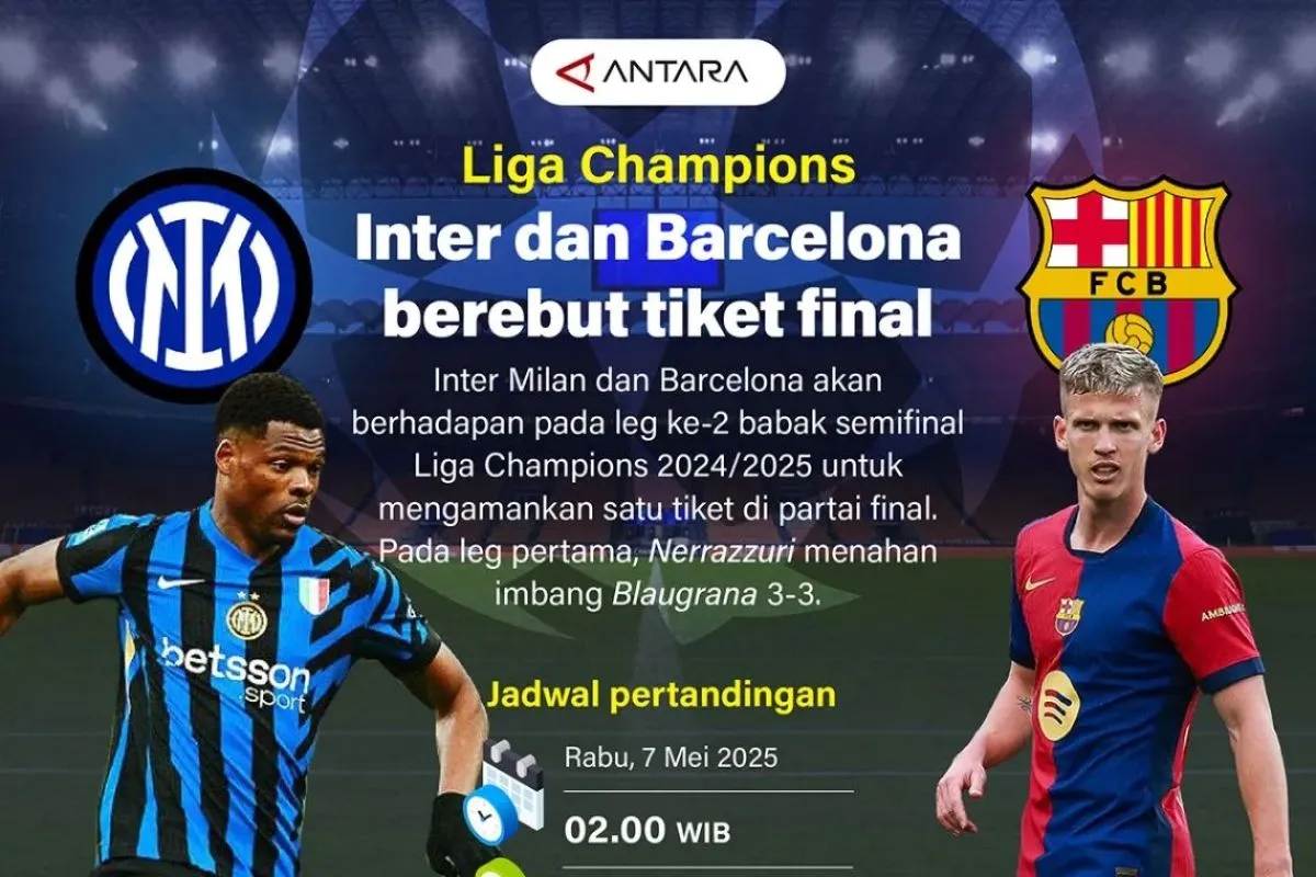 Inter Milan dan Barcelona akan berhadapan pada leg ke-2 babak semifinal Liga Champions 2024/2025 untuk mengamankan satu tiket di partai final. Pada leg pertama, Nerrazzuri menahan imbang Blaugrana 3-3.