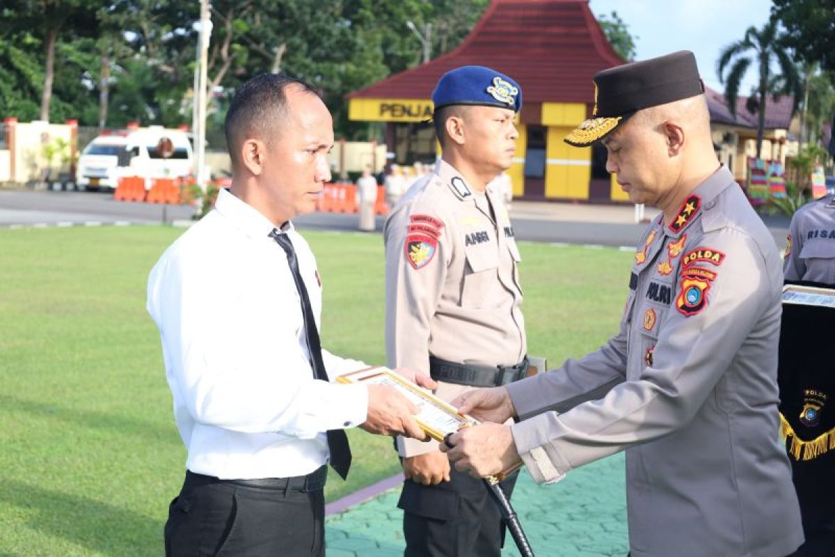 Pemberian penghargaan dilangsungkan pada saat apel pagi di halaman Mapolda Babel, Selasa. Dalam apel tersebut, turut dihadiri Wakapolda Brigjen Pol Tony Harsono, para Pejabat Utama Polda serta seluruh personel dan ASN Polda Babel.