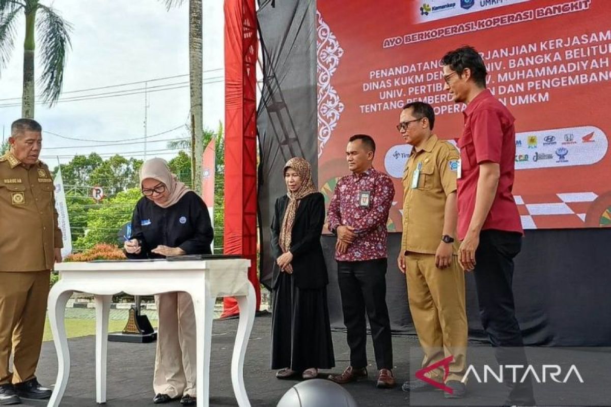 Ia mengatakan Dinas Koperasi dan UKM Provinsi Kepulauan Bangka Belitung menandatangani kerja sama dengan Universitas Bangka Belitung (UBB), Universitas Muhammadiyah, IAIN SAS dan Universitas Pertiba untuk melaksanakan "Gempur" ke UMKM dan koperasi merah putih di perdesaan, kelurahan se-Kepulauan Babel.