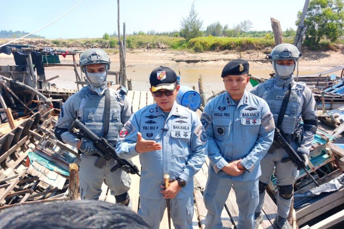 Pangkalpinang (ANTARA) - Badan Keamanan Laut Republik Indonesia (Bakamla RI) melalui Stasiun Bakamla RI Bangka Belitung bersama unsur patroli laut KN Belut Laut-406 melakukan penertiban terhadap aktivitas penambangan pasir timah ilegal di kawasan Izin Usaha Pertambangan (IUP) PT Timah, Tempilang, Kabupaten Bangka Barat, Kamis.