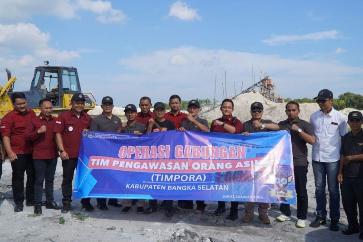 Bangka Selatan (ANTARA) - Kantor Imigrasi Kelas I TPI Pangkalpinang bersama Timpora Kabupaten Bangka Selatan Provinsi Kepulauan Bangka Belitung menggelar operasi gabungan pengawasan orang asing di kawasan penambangan bijih timah Desa Gadung Bangka Selatan.