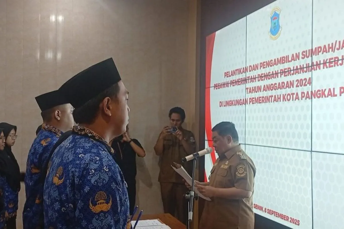 Pangkalpinang (ANTARA) - Penjabat Wali Kota Pangkalpinang, M. Unu Ibnudin resmi melantik 12 orang Pegawai Pemerintah dengan Perjanjian Kerja (P3K) gelombang kedua di Ruang SRC Kantor Wali Kota Pangkalpinang, Senin (08/09).