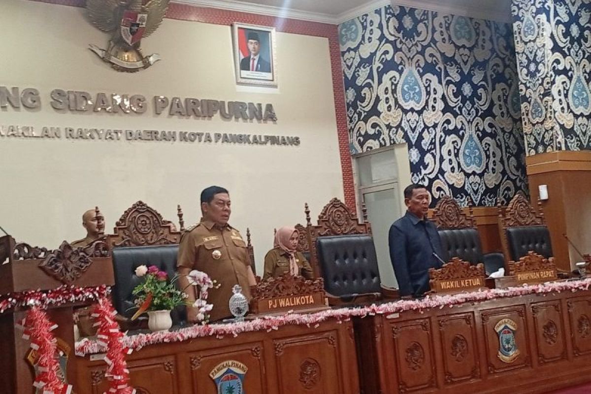 Pangkalpinang (ANTARA) - Penjabat Wali Kota Pangkalpinang, Unu Ibnudin menyampaikan dua rancangan peraturan daerah (Raperda) pada Rapat Paripurna Kesatu Masa Persidangan I Tahun 2025 yang dilaksanakan di DPRD kota setempat, Senin (15/9).