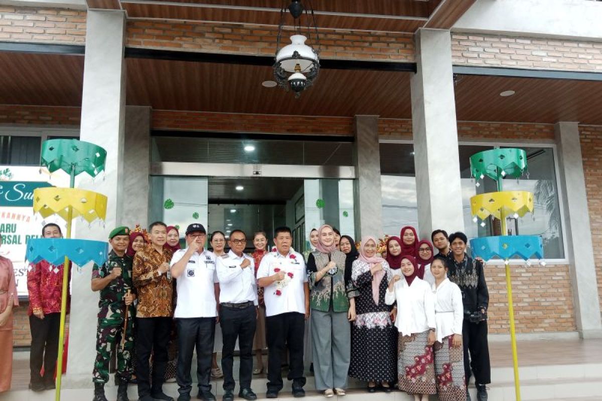 Peresmian ditandai dengan penandatanganan prasasti dan pengguntingan pita gedung baru SMA Universal Belitung.