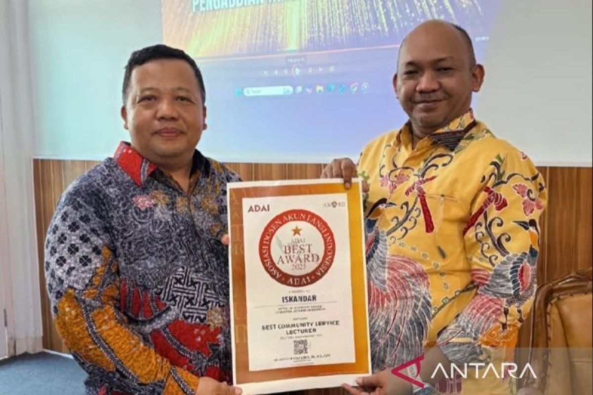 Pangkalpinang (ANTARA) - Akademisi sekaligus Dekan Fakultas Syariah dan Ekonomi Islam (FSEI) Institut Agama Islam Negeri (IAIN) Syaikh Abdurrahman Siddik Bangka Belitung, Dr Iskandar, meraih dua penghargaan sekaligus dalam ajang Best Asosiasi Dosen Akuntansi Indonesia (ADAI) Award 2025 yang digelar di salah satu hotel di Tanjung Pandan, Jumat (7/11).