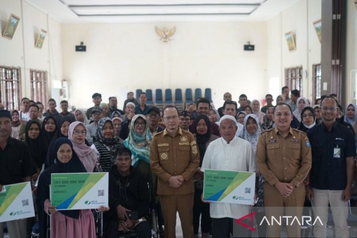 Koba, Babel (ANTARA) - Pemerintah Kabupaten Bangka Tengah bekerja sama dengan BPJS Ketenagakerjaan menyerahkan 120 kartu Jaminan Ketenagakerjaan Usaha Mikro Kecil dan Menengah (Jaket UMKM) kepada para pelaku usaha sebagai bentuk komitmen pemerintah dalam memberikan perlindungan dan meningkatkan kapasitas usaha.