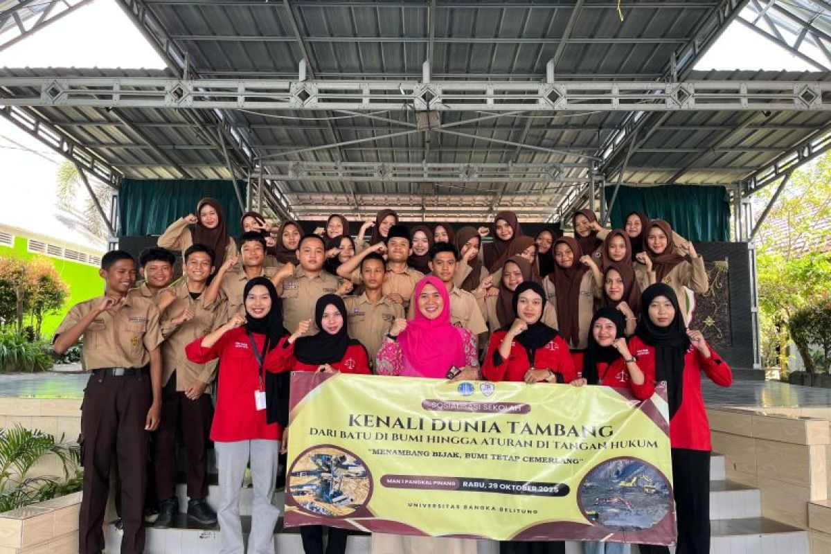 Pangkalpinang (ANTARA) - Mahasiswa Fakultas Hukum Universitas Bangka Belitung (UBB) menggelar sosialisasi hukum pertambangan kepada siswa MAN 1 Pangkalpinang sebagai upaya menumbuhkan kesadaran hukum dan kepedulian lingkungan sejak dini, khususnya terkait aktivitas pertambangan timah yang menjadi bagian penting dari kehidupan masyarakat Bangka Belitung.