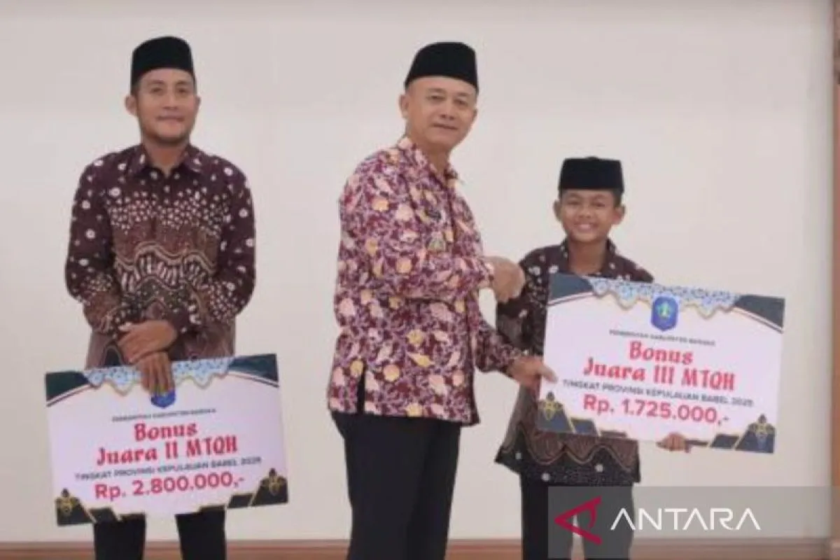Bangka (ANTARA) - Pemerintah Kabupaten Bangka memberikan bonus pembinaan kepada beberapa anggota kafilah yang berprestasi sehingga mengantar daerah tersebut sebagai juara umum Musabaqah Tilawatil Qur'an dan Hadis (MTQH) XIV tingkat Provinsi Kepulauan Bangka Belitung tahun 2025.