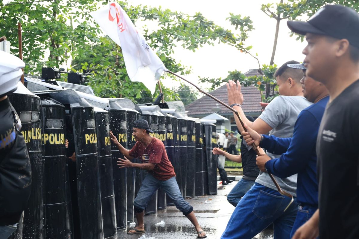 Dari pantauan, simulasi itu pun menampilkan skenario unras yang awalnya berlangsung tertib namun berubah menjadi anarkis.