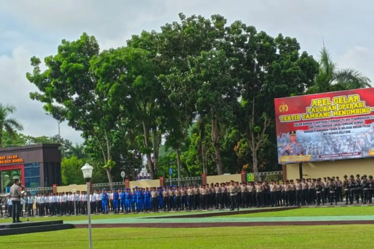 Pangkalpinang (ANTARA) - Kepolisian Daerah Kepulauan Bangka Belitung melaksanakan Apel gelar pasukan Operasi Tertib Tambang Menumbing 2025 sebagai upaya menata kegiatan pertambangan agar sesuai aturan dan mencegah kerusakan lingkungan di wilayah setempat.