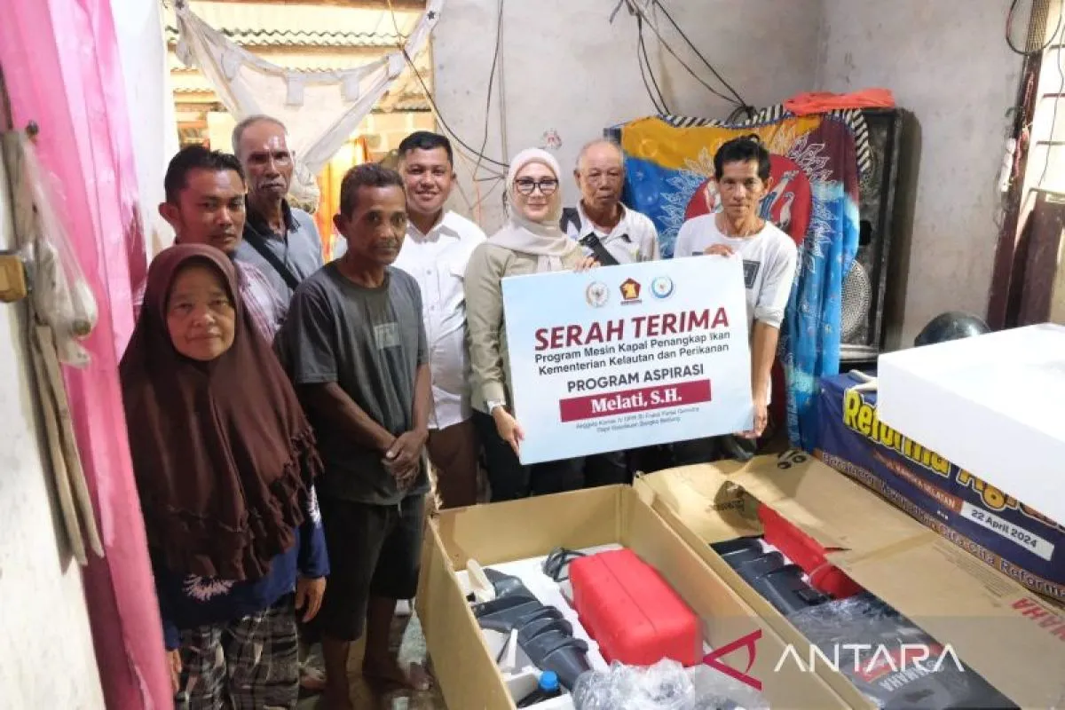 Bangka Selatan (ANTARA) - Anggota Komisi IV DPR RI Fraksi Partai Gerindra Daerah Pemilihan Kepulauan Bangka Belitung, Melati, S.H., menyerahkan bantuan empat unit mesin kapal nelayan kepada Kelompok Usaha Bersama (KUB) Kelisut Mandiri di Kelurahan Tanjung Ketapang, Kecamatan Toboali, Kabupaten Bangka Selatan.