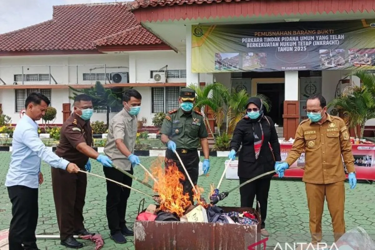 Ia menjelaskan, pemusnahan dilakukan terhadap barang bukti perkara narkotika sebanyak 15 perkara dan tindak pidana umum lainnya sebanyak 22 perkara, sebagai pelaksanaan putusan pengadilan.