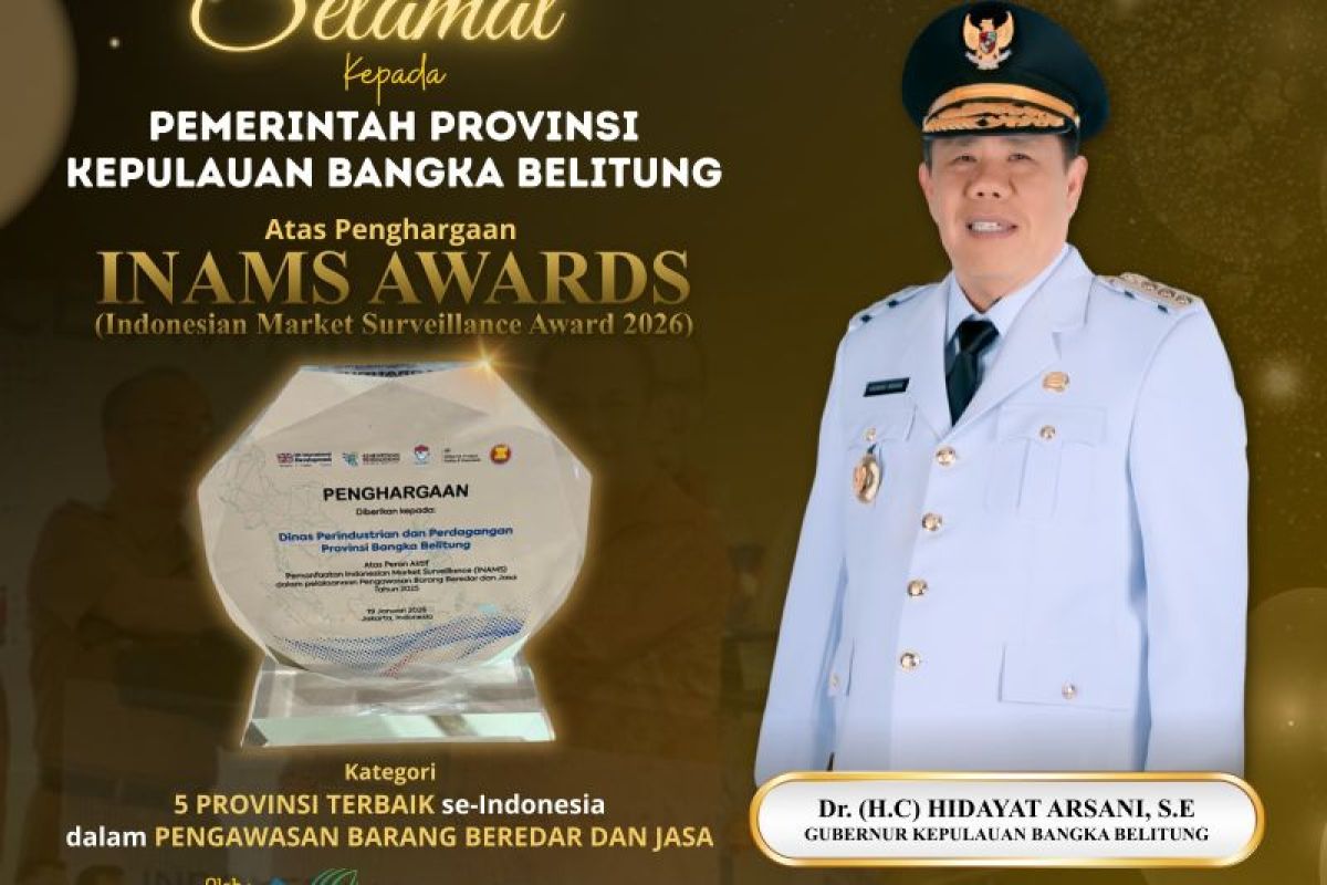 "Kami berharap penghargaan INAMS Award 2026 yang didapat ini, dapat menjadi motivasi bagi Pemprov Babel untuk terus meningkatkan kinerja pengawasan barang beredar dan jasa, serta memperkuat pemanfaatan sistem INAMS di Babel," katanya.