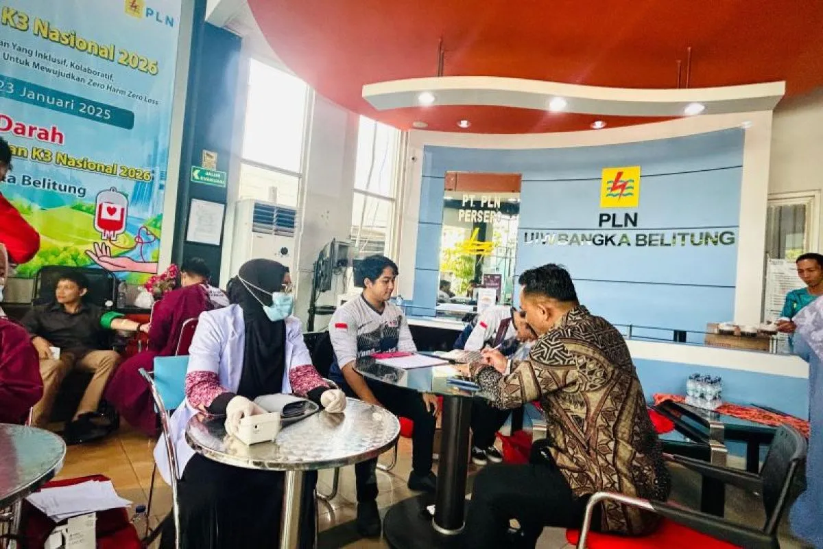 Pangkalpinang (ANTARA) - PT PLN (Persero) Unit Induk Wilayah (UIW) Bangka Belitung menggelar kegiatan donor darah yang diikuti dengan antusias oleh pegawai PLN Group di wilayah Bangka Belitung dalam rangka memperingati Bulan Keselamatan dan Kesehatan Kerja (K3) Nasional Tahun 2026 di lobi Kantor PLN UIW Bangka Belitung, Kamis (23/1).