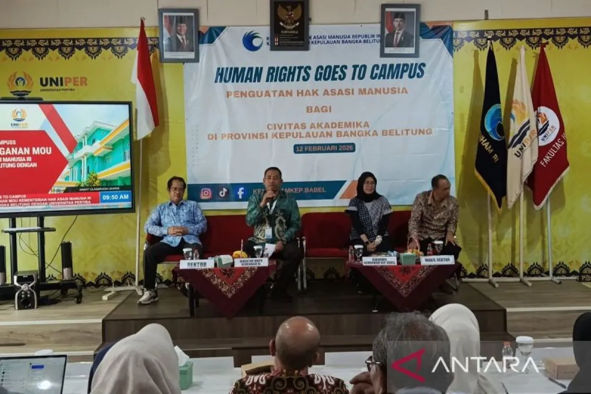 Pangkalpinang (ANTARA) - Kementerian Hak Asasi Manusia (HAM) menggelar "Human Rights Goes to Campus" di Universitas Pertiba Kepulauan Kepulauan Bangka Belitung, guna memperkuat hak asasi manusia bagi civitas akademika di kampus itu.