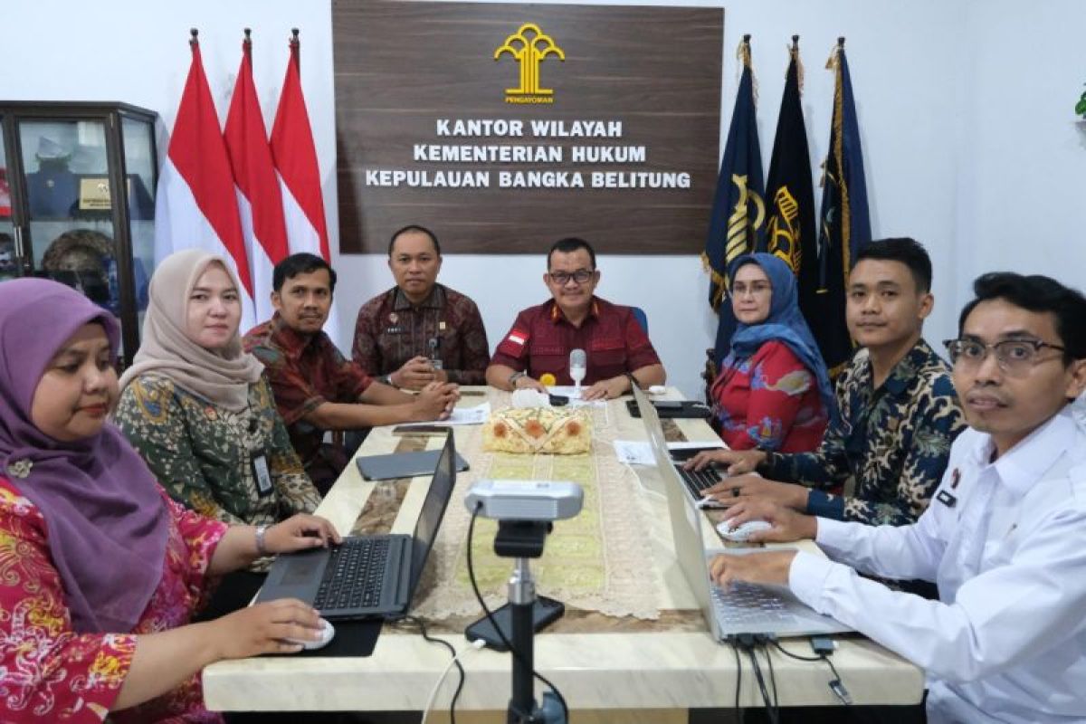 Pangkalpinang (ANTARA) - Kepala Kanwil Kementerian Hukum Provinsi Kepulauan Bangka Belitung, Johan Manurung bersama Kepala Bidang Pelayanan Administrasi Hukum Umum (AHU) Muhammad Bang Bang serta jajaran Bidang AHU mengikuti kegiatan Webinar Petunjuk Teknis Layanan Perseroan Perorangan yang diselenggarakan secara virtual melalui Zoom Meeting (hybrid), Kamis (26/02/2026) pukul 10.20–12.30 WIB.