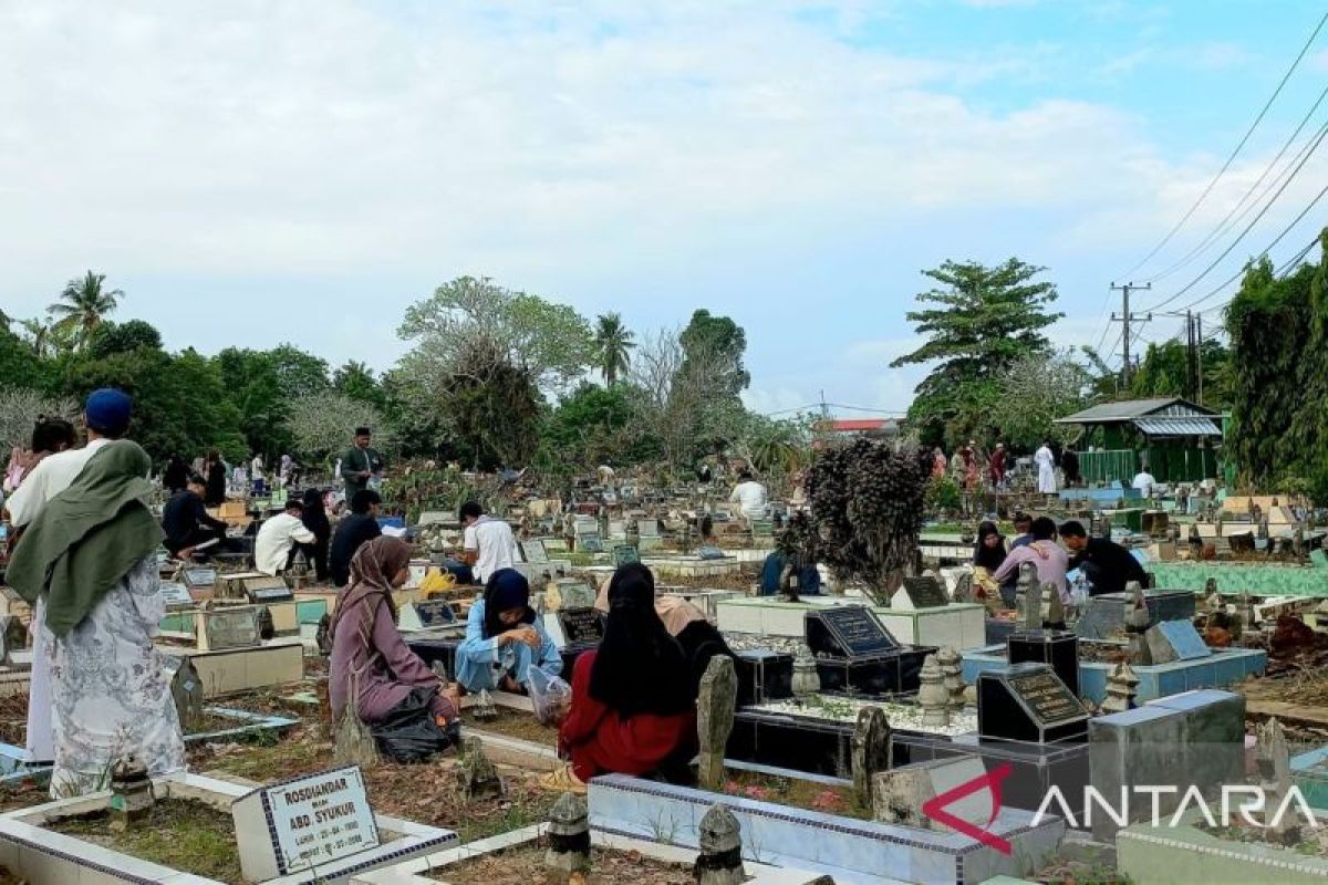 Pangkalpinang (ANTARA) - Ratusan warga Kota Pangkalpinang, Provinsi Kepulauan Bangka Belitung memadati tempat pemakaman umum (TPU) untuk berziarah ke makam orang tua, keluarga dan rekan kerabatnya di momen Hari Raya Idul Fitri 1447 Hijriah.