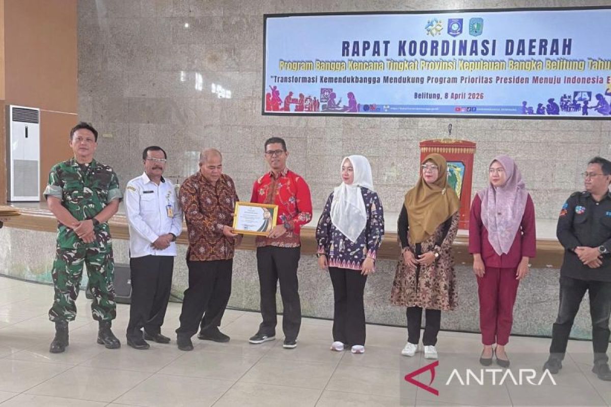 Penghargaan tersebut diserahkan pada Rakorda Program Bangga Kencana tingkat provinsi Kepulauan Bangka Belitung tahun 2026 di Gedung Serba Guna H.lsyak Zainudin Tanjung Pandan, Belitung, Rabu (8/4).