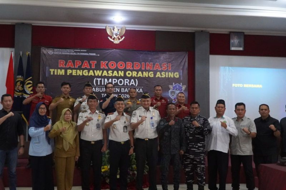 Pangkalpinang (ANTARA) - Kantor Imigrasi Kelas I TPI Pangkalpinang menggelar Rapat Koordinasi Tim Pengawasan Orang Asing (TIMPORA) di Kabupaten Bangka Tahun 2026, guna memperkuat sinergi dalam pengawasan warga negara asing (WNA) dan mencegah TPPO di daerah itu.