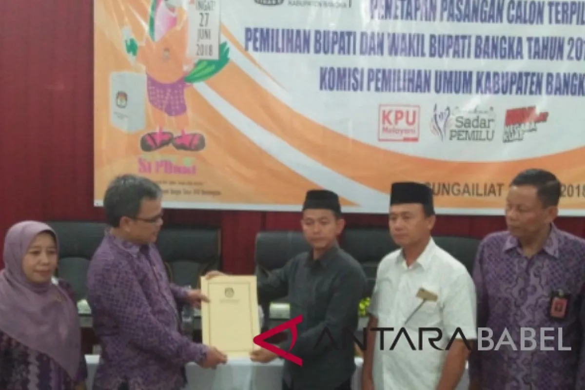Hal itu sesuai dalam Keputusan Komisi Pemilihan Umum Kabupaten Bangka Nomor 64/ HK. 03.1 - kpt/ 1901/ KPU - Kab/ VII / 2018 tentang Penetapan Calon Bupati dan Wakil Bupati Terpilih Dalam Pemilihan Bupati dan Wakil Bupati Bangka Tahun 2018.