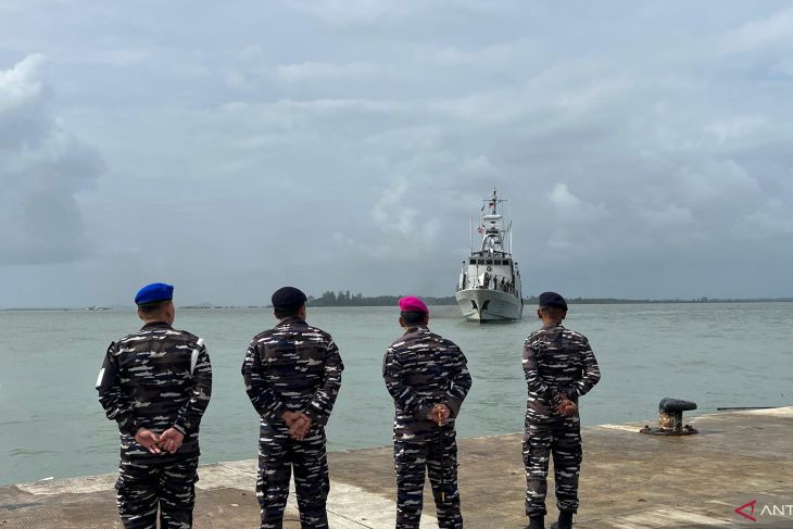 Lanal Babel menyambut kedatangan KRI Todak-631 di Dermaga Pelindo II Tanjung Gudang, Belinyu, Kabupaten Bangka, Provinsi Kepulauan Bangka Belitung, Senin (5/1/2026). Kedatangan KRI Todak-631 itu dalam rangka melaksanakan Operasi Perisai Wira 26 sebagai bagian dari Bawah Kendali Operasi (BKO) Gugus Keamanan Laut (Guskamla) Koarmada I di wilayah perairan Bangka Belitung. (ANTARA/HO-Lanal Babel)