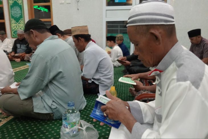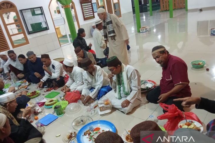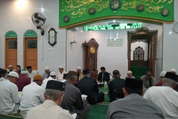 Umat Muslim mengikuti rangkaian ibadah pada peringatan Malam Nisfu Sya’ban di Masjid AlQurbah Gabek Dua Kota Pangkalpinang Provinsi Kepulauan Bangka Belitung pada Senin malam (1/2/2025). Kegiatan diisi dengan pembacaan Surah Yasin, doa arwah dan nganggung bersama sebagai bentuk ikhtiar spiritual serta permohonan ampunan kepada Allah SWT menjelang bulan suci Ramadan. Peringatan Malam Nisfu Sya’ban berlangsung dengan tertib dan khidmat serta diikuti oleh jamaah dari berbagai lapisan masyarakat. (ANTARA/Rustam)