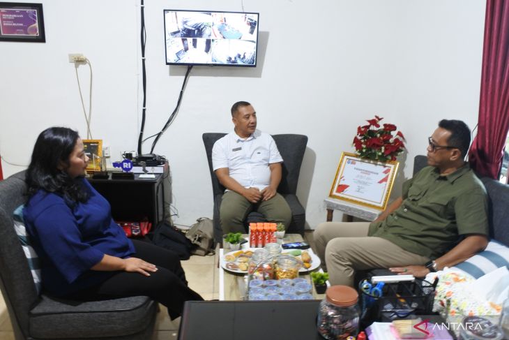 Kepala Perum LKBN ANTARA Biro Kepulauan Bangka Belitung, Feny Aprianti (kiri), didampingi mantan Kepala Biro ANTARA Babel Joko Susilo (tengah), menerima kunjungan Kepala Badan Intelijen Daerah (Kabinda) Kepulauan Bangka Belitung di Kantor LKBN ANTARA Babel, Rabu (4/2/2026).Kunjungan tersebut bertujuan mempererat silaturahmi dan memperkuat sinergi kelembagaan. (Antara/ Rustam)