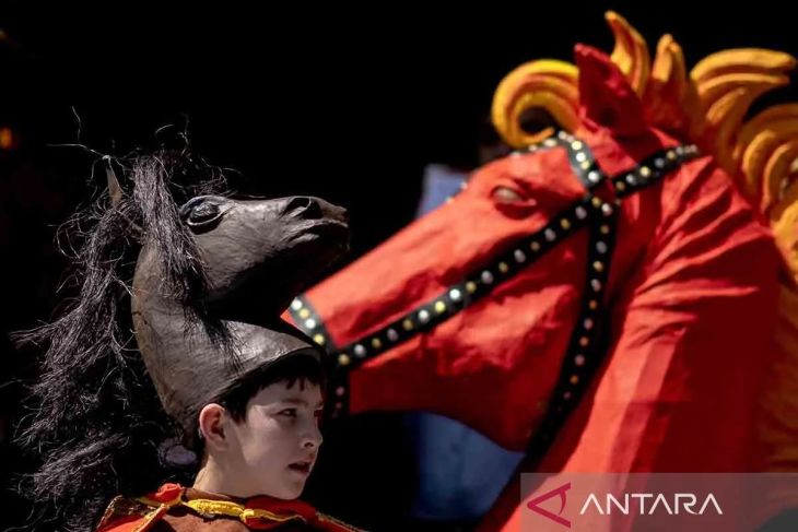 Seorang remaja mengenakan topi berbentuk kuda saat menghadiri edisi kelima festival budaya Tahun Baru Imlek di Mexico City, Meksiko, Sabtu (14/2/2026). ANTARA FOTO/Xinhua/David de la Paz/rwa.