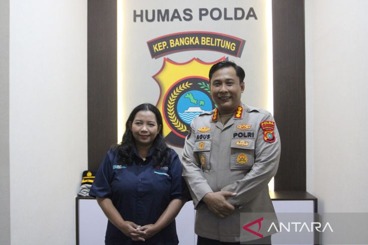 Kepala LKBN ANTARA Biro Kepulauan Bangka Belitung, Feny Aprianti (kiri) foto bersama dengan Kabid Humas Polda Kepulauan Bangka Belitung, Kombes Pol Agus Sugiyarso (kanan), di Ruang Kabid Humas Polda Babel, Rabu (4/3/2026). Pertemuan tersebut bertujuan memperkuat sinergi dan koordinasi dalam meningkatkan keterbukaan serta optimalisasi penyebaran informasi kepada masyarakat di wilayah Kepulauan Bangka Belitung. (ANTARA/Rustam Effendi)