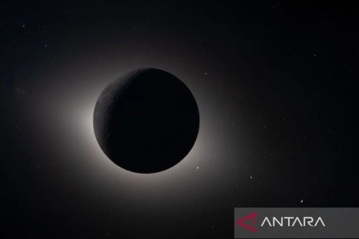 Foto yang diambil pada 6 April 2026 menunjukkan Bulan menutupi Matahari sepenuhnya, dilihat dari pesawat ruang angkasa Orion. ANTARA FOTO/NASA/Handout via Xinhua/tom.